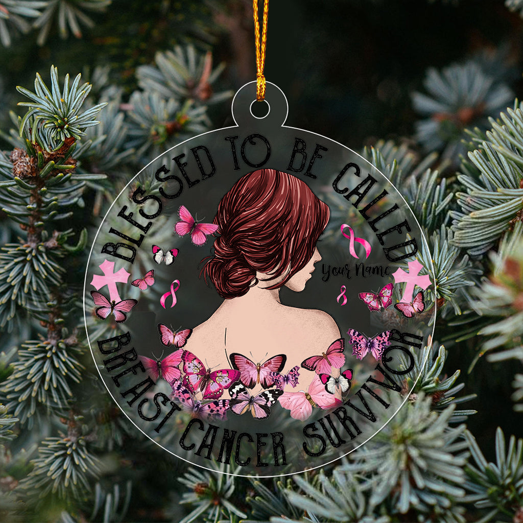 But The Lord Stood At By My Side - Personalized Christmas Breast Cancer Awareness Transparent Ornament