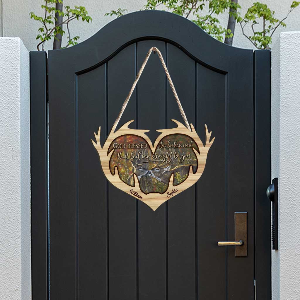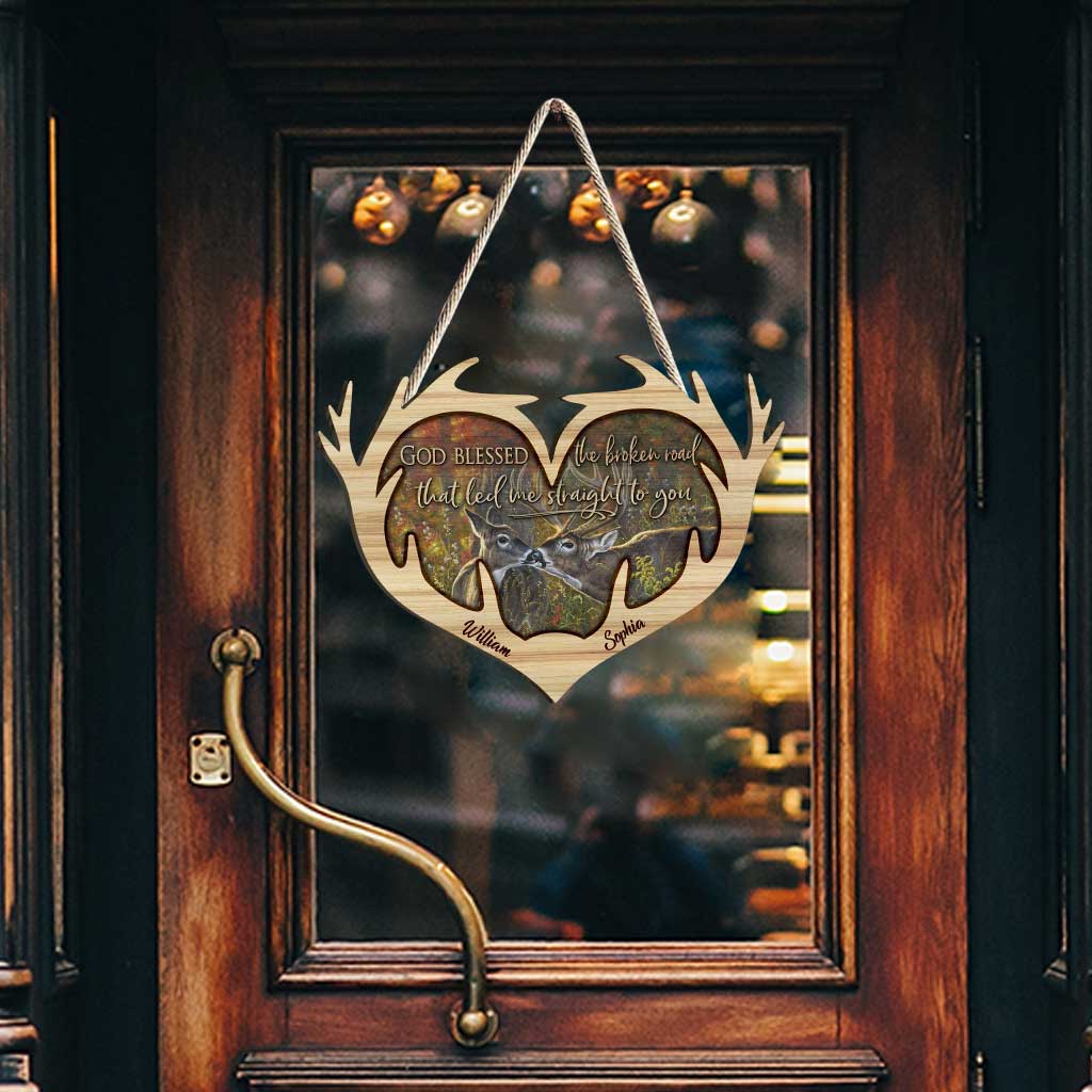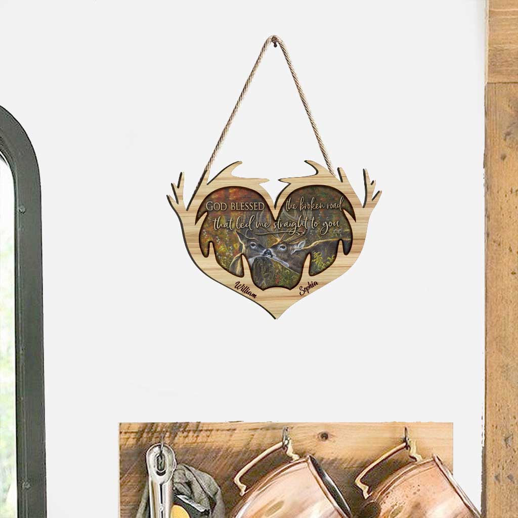 God Blessed The Broken Road - Personalized Christmas Hunting Wood Sign