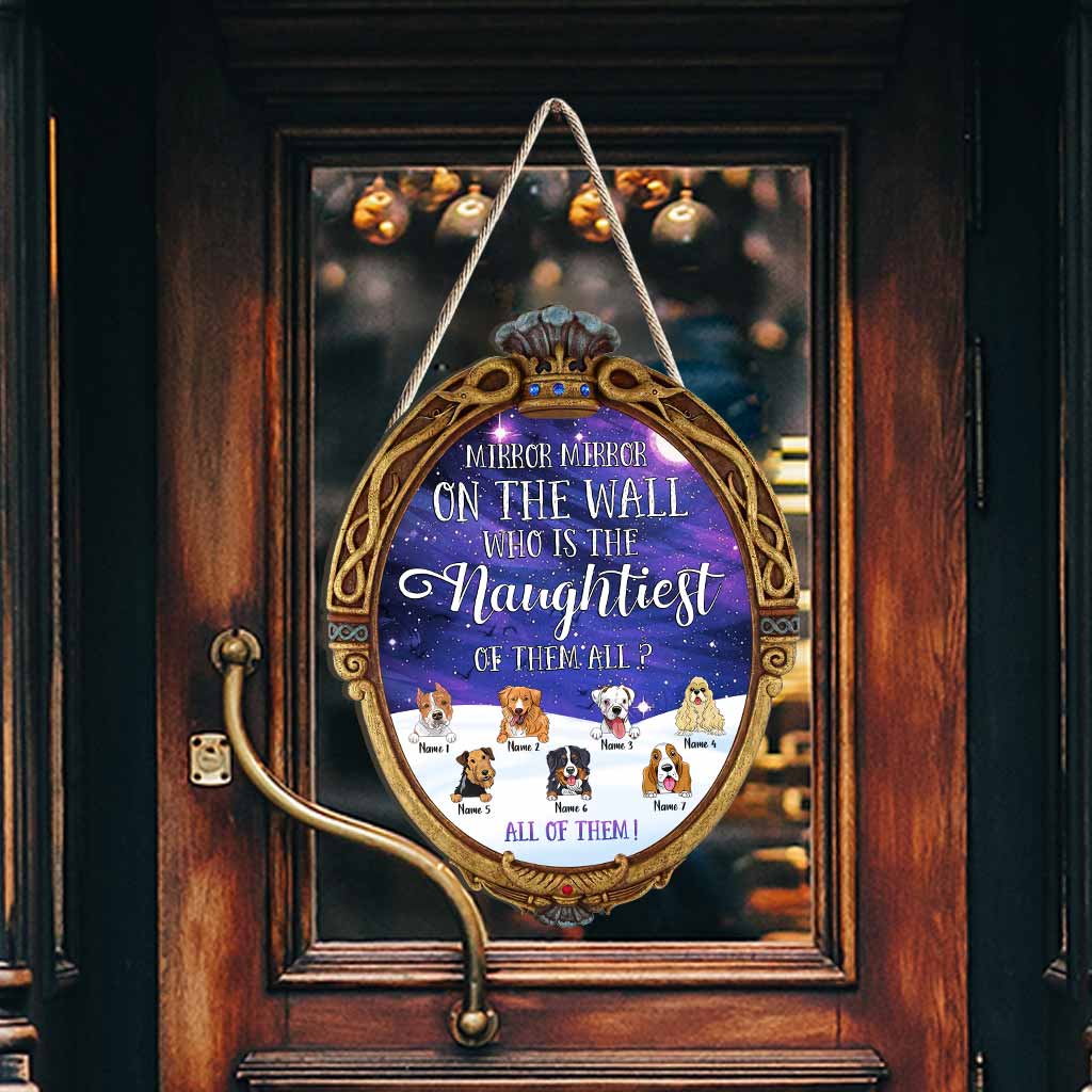Mirror Mirror On The Wall Naughtiest Dogs - Personalized Christmas Wood Sign